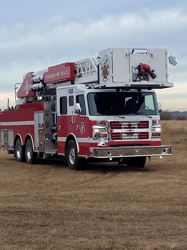 The Vermilion Fire Department brought two fire trucks with them, including their new ladder truck.