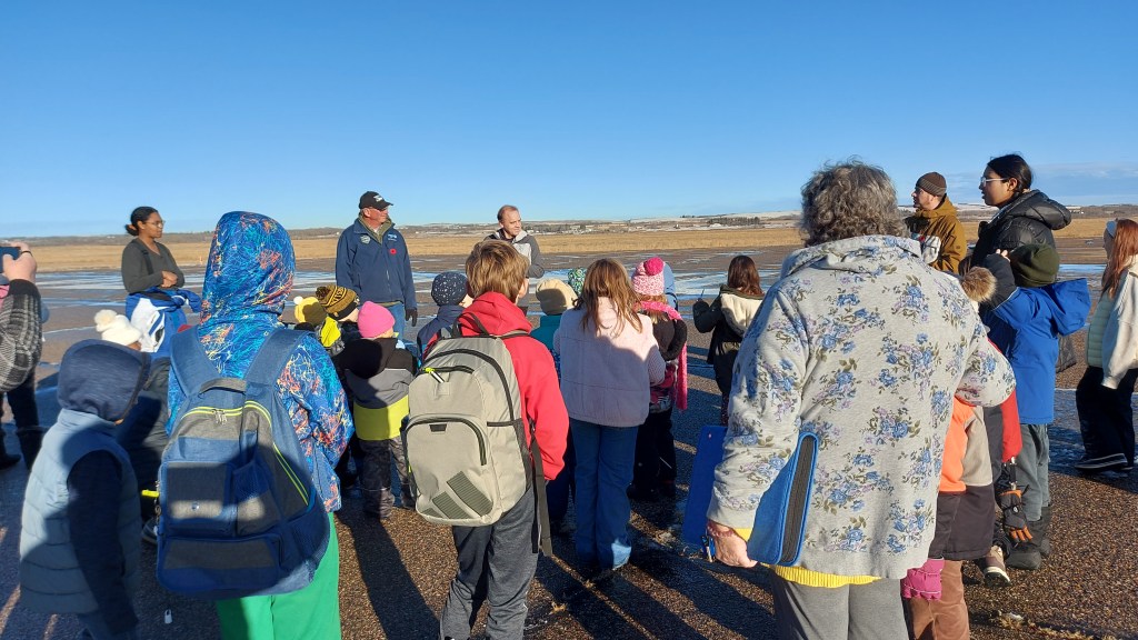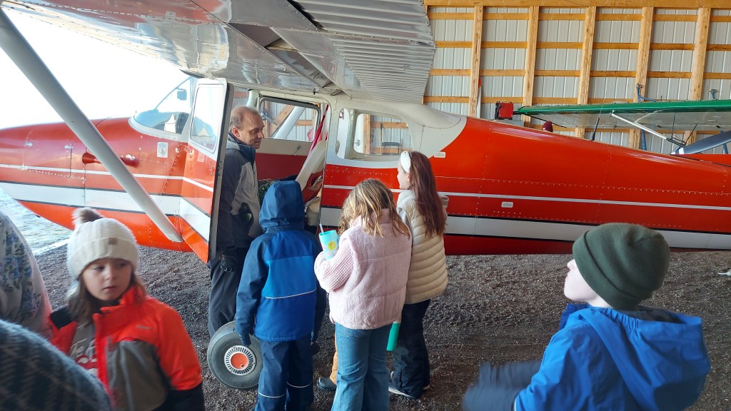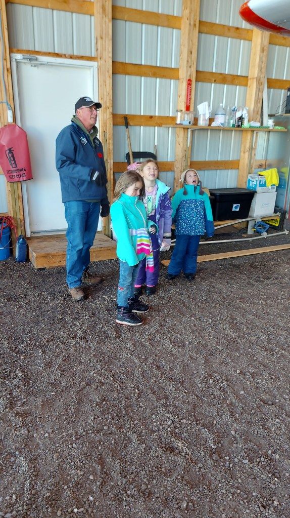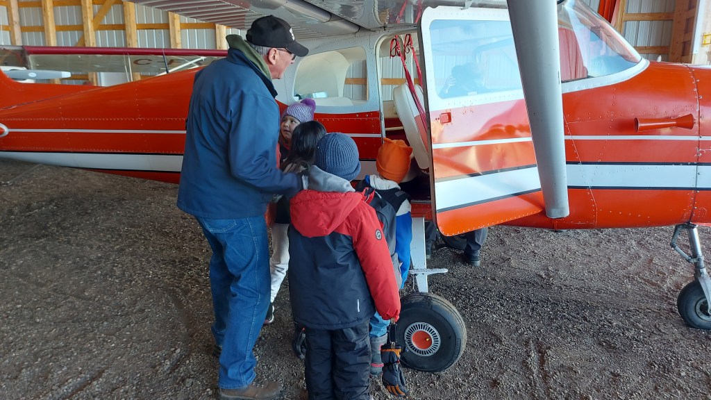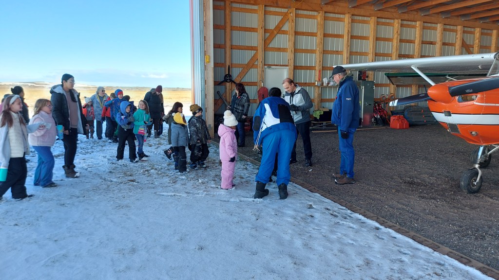 Flight instructor Erwin Warkentin, weather specialist Darcy Balaneski, and retired college director/farmer Larry Bingham gave them an age-appropriate tour.