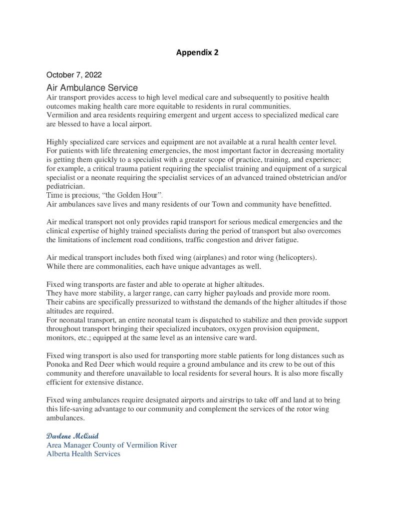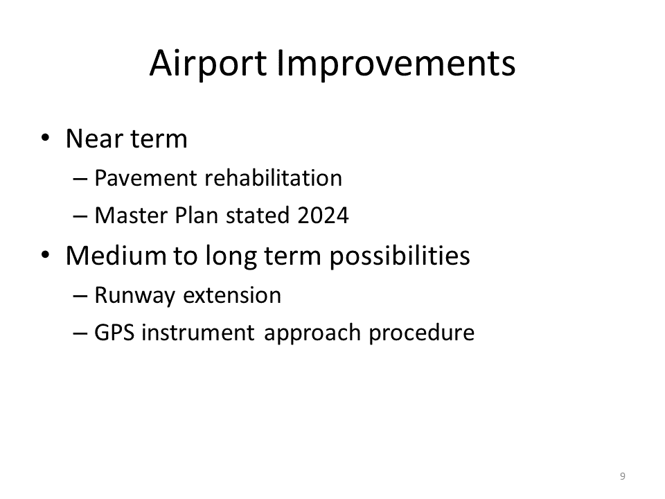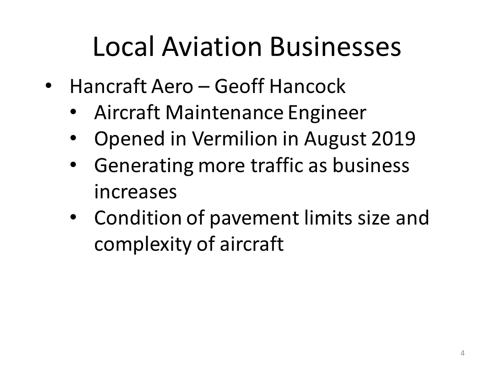 Presentation to Vermilion Town Council October 18, 2022 by the Airport Advisory Committee.